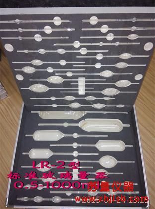 一、產(chǎn)品簡介 LR-2型標準玻璃量器是依據(jù)JJG20-2001《標準玻璃量器檢定規(guī)程》設(shè)計生產(chǎn)。容量標準球分為平頭型、尖頭型和連球型三種型式。 本產(chǎn)品用于檢定或校準B級及以下滴定管、單標線吸量管、分度吸量管、容量瓶、量杯、量筒等玻璃量器。也用于生產(chǎn)企業(yè)對B級及以下玻璃量器容量進行定點。 二、產(chǎn)品概述 1、型號:LR-2 2、規(guī)格:(0.5-1000)ml 32支組。 (0.5-2000)ml 33支組 3、材料:容量標準球采用無色透明的高硼硅玻璃吹制而成,經(jīng)過熱處理工藝后無集中應(yīng)力存在。 4、線脹系數(shù):符合JJG20-2001《標準玻璃量器檢定規(guī)程》要求。 5、允許誤差:符合JJG196-2006《常用玻璃量器檢定規(guī)程》要求。 6、使用介質(zhì):純水(蒸餾水或去離子水)。 7、使用方法:采用容量比較法對玻璃量器進行檢定/校準和玻璃量器定點。 8、環(huán)境條件:室溫(20±5)℃,且水溫與室溫之差不得大于2℃。 9、容量標準球的型式、用途和標稱容量見表: